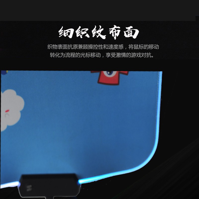 鼠標(biāo)墊的四周便亮起RGB七彩燈光,顏值瞬間拉滿。通過頂部的燈效切換按鍵,還能調(diào)節(jié)多種燈效,既有固定的,也有動態(tài)的,除了七彩燈效,也能設(shè)置自己喜歡的單色。