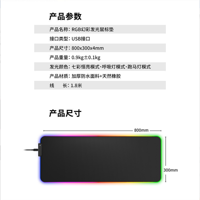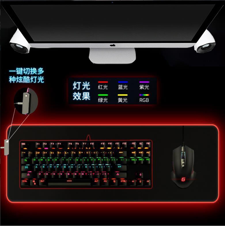 炫彩RGB發光動漫游戲多功能usb防滑鼠標墊
